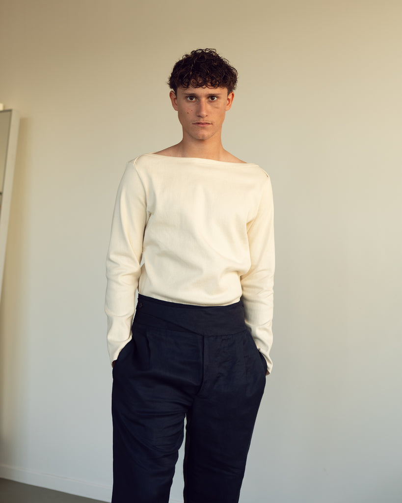 Crafted from deadstock linen and viscose twill.